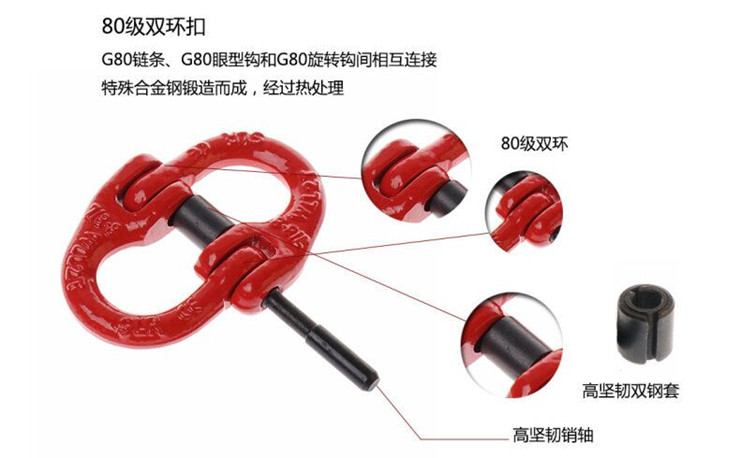 蝴蝶扣/雙環(huán)扣采用優(yōu)質(zhì)碳素結(jié)構(gòu)鋼或合金結(jié)構(gòu)鋼鍛造并進(jìn)行熱處理而成,具有體積小、重量輕、強(qiáng)度高等特點(diǎn), 最大試驗(yàn)載荷為額定載荷的2倍,最小破斷載荷為額定載荷的4倍。本產(chǎn)品嚴(yán)格按國家3包執(zhí)行,產(chǎn)品質(zhì)量由中國人民保險公司(PICC)承保,請放心使用。