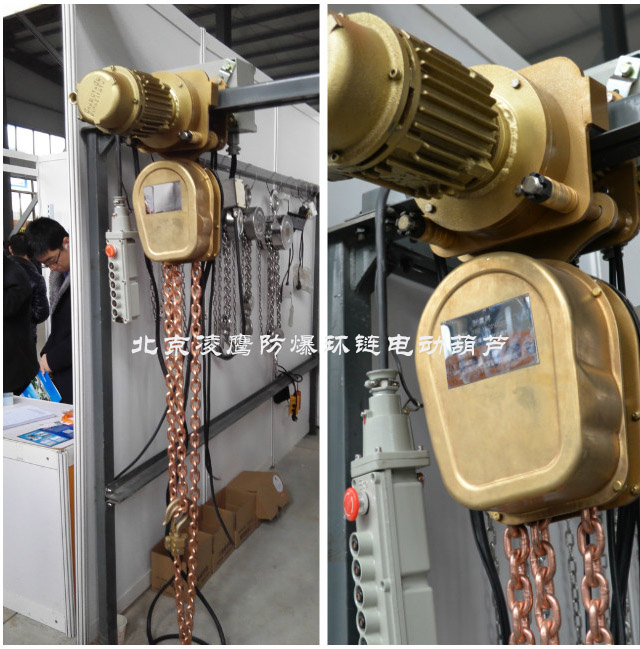防爆環(huán)鏈電動葫蘆廣泛應(yīng)用于石油、石化、油站、油庫、采氣、化工、軍工、電力、礦山、電子、鐵路、等潛在火患和爆炸的危險環(huán)境中。在作業(yè)中產(chǎn)品相互摩擦撞擊不會產(chǎn)生機械火花,在易燃易爆場所不引爆氣體,有效防止火災(zāi)事故,確保國家財產(chǎn)和人身安全。